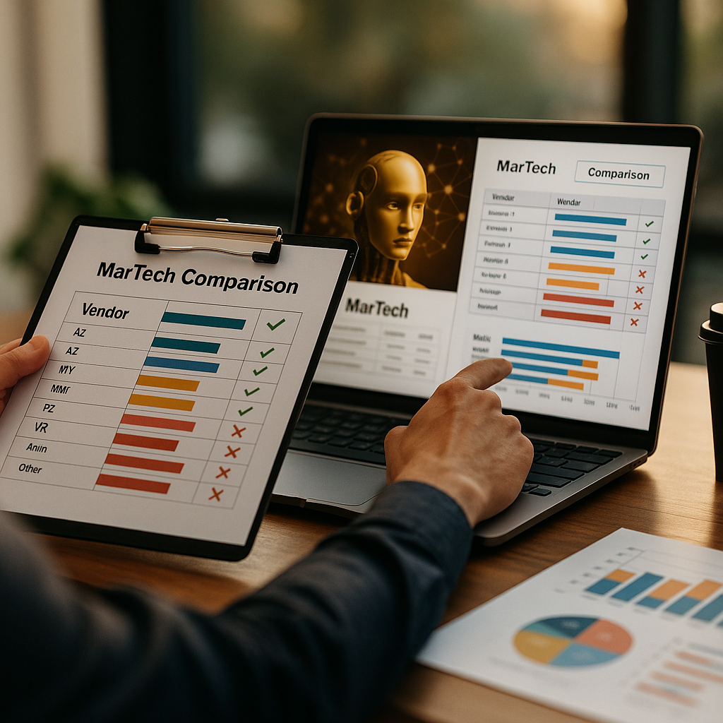Let’s be honest about the current state of vendor evaluation in most marketing organizations. A brief gets drafted. It circulates through legal, IT, and marketing. Weeks pass. A spreadsheet emerges — columns for features, pricing tiers, compliance certifications, integration capabilities. Someone assigns scores. Someone else disagrees. The process stalls.