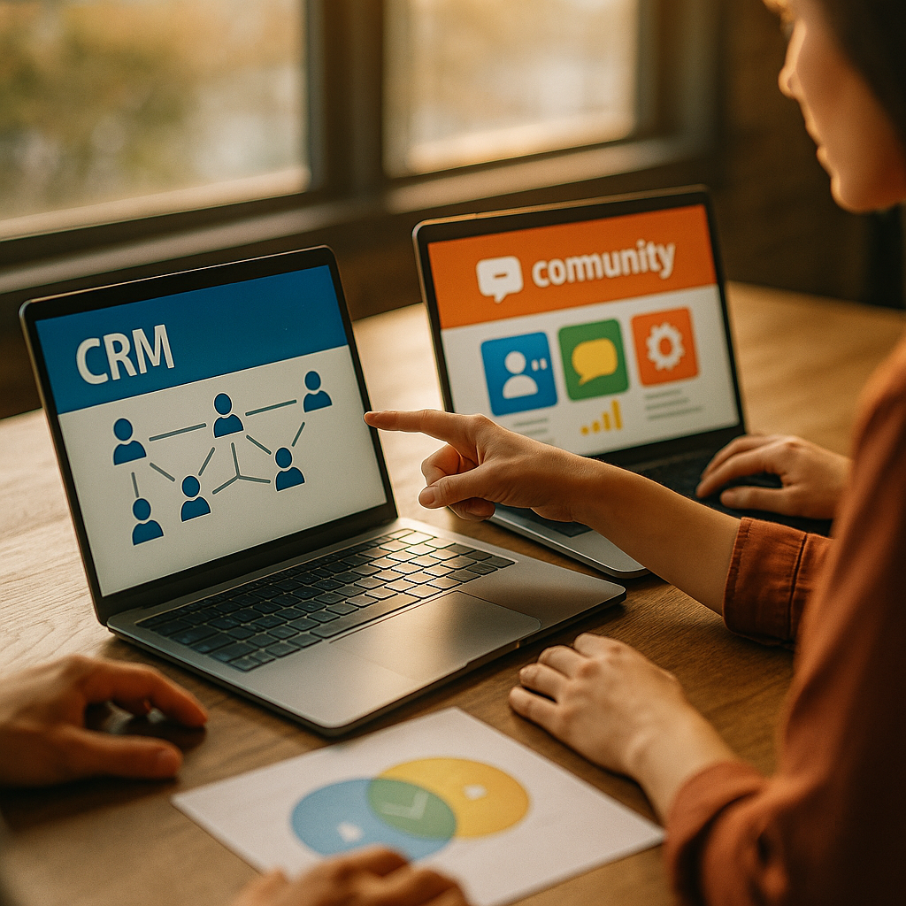 A CRM and a community platform serve different jobs: the CRM manages accounts, pipeline, and customer history; the community platform powers peer-to-peer support, events, groups, content, and advocacy. Middleware sits between them to keep identities, activity, and permissions aligned. Before comparing solutions, define what success means in practical terms.