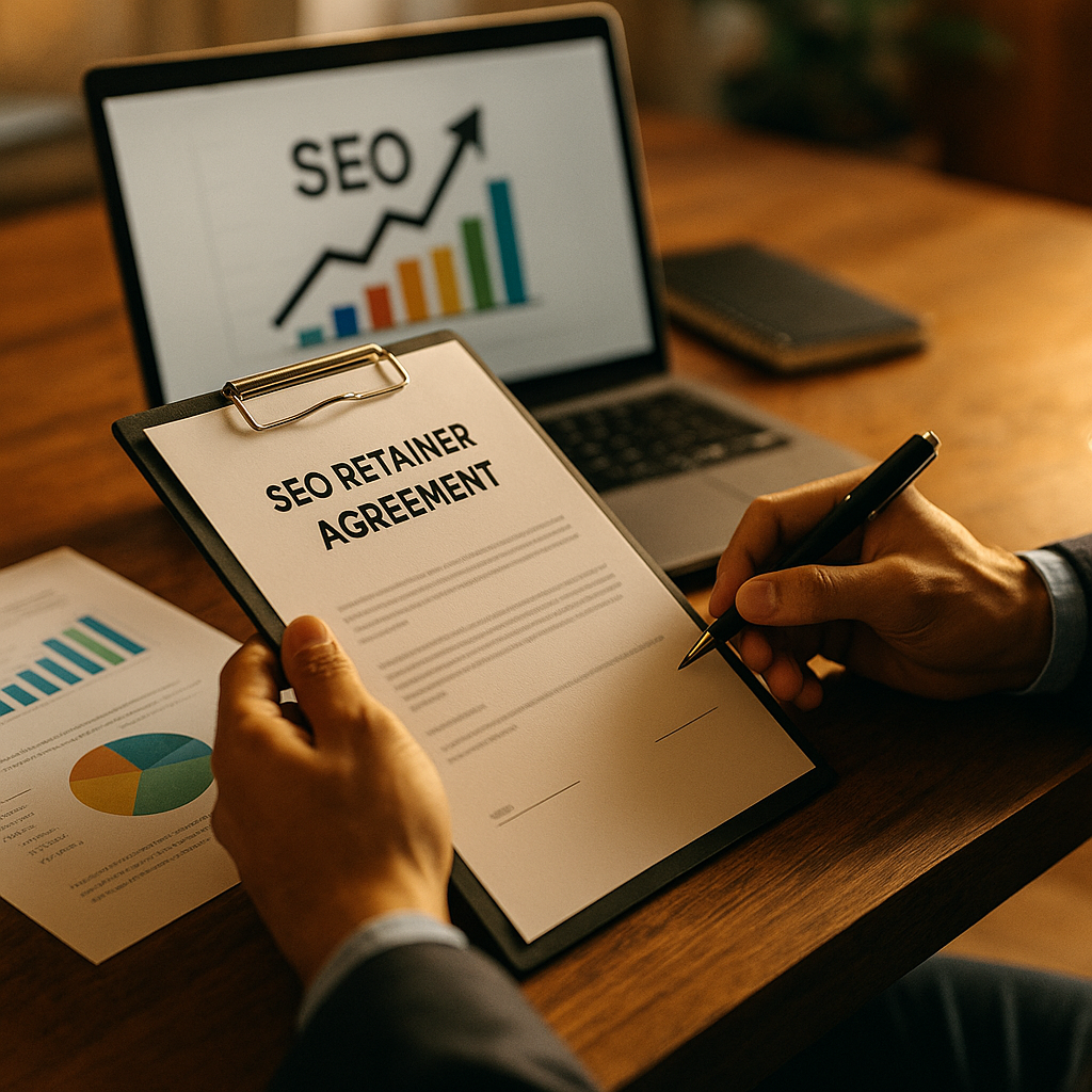 An SEO retainer agreement is a contract where a client pays a recurring fee for ongoing SEO services, such as optimization, technical maintenance, strategy, and reporting.