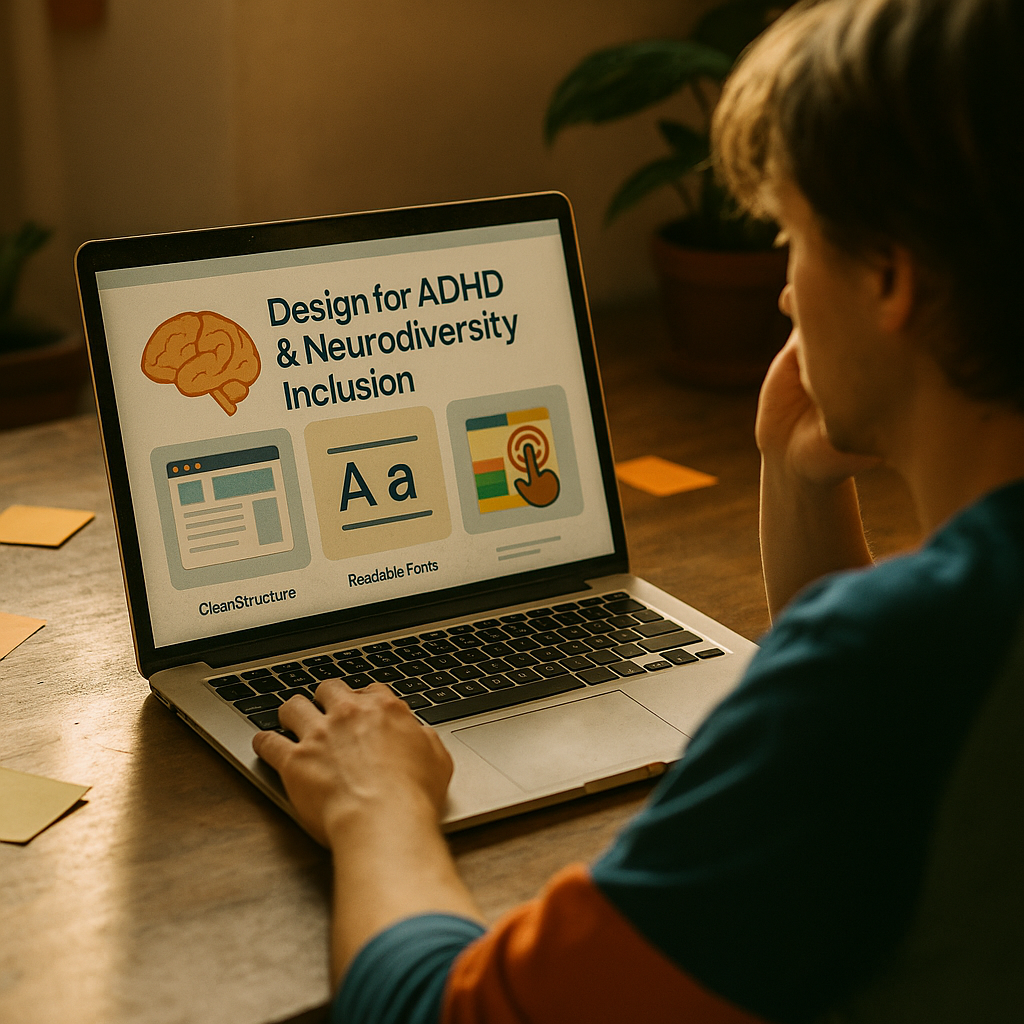 Many ADHD users struggle with competing stimuli: motion, autoplay media, cluttered sidebars, and unpredictable pop-ups. Neuro-inclusive UX reduces these triggers while keeping the experience engaging.