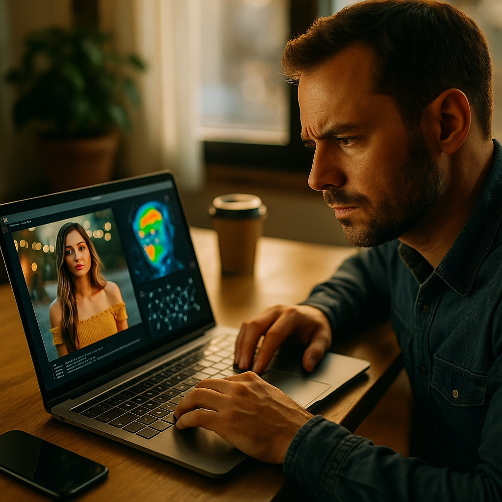 • Image Forensics: AI tools examine anomalies in skin textures, eye reflections, and unnatural backgrounds. Synthetic avatars often have overly perfect features or lack minor facial imperfections like pores or hairs.