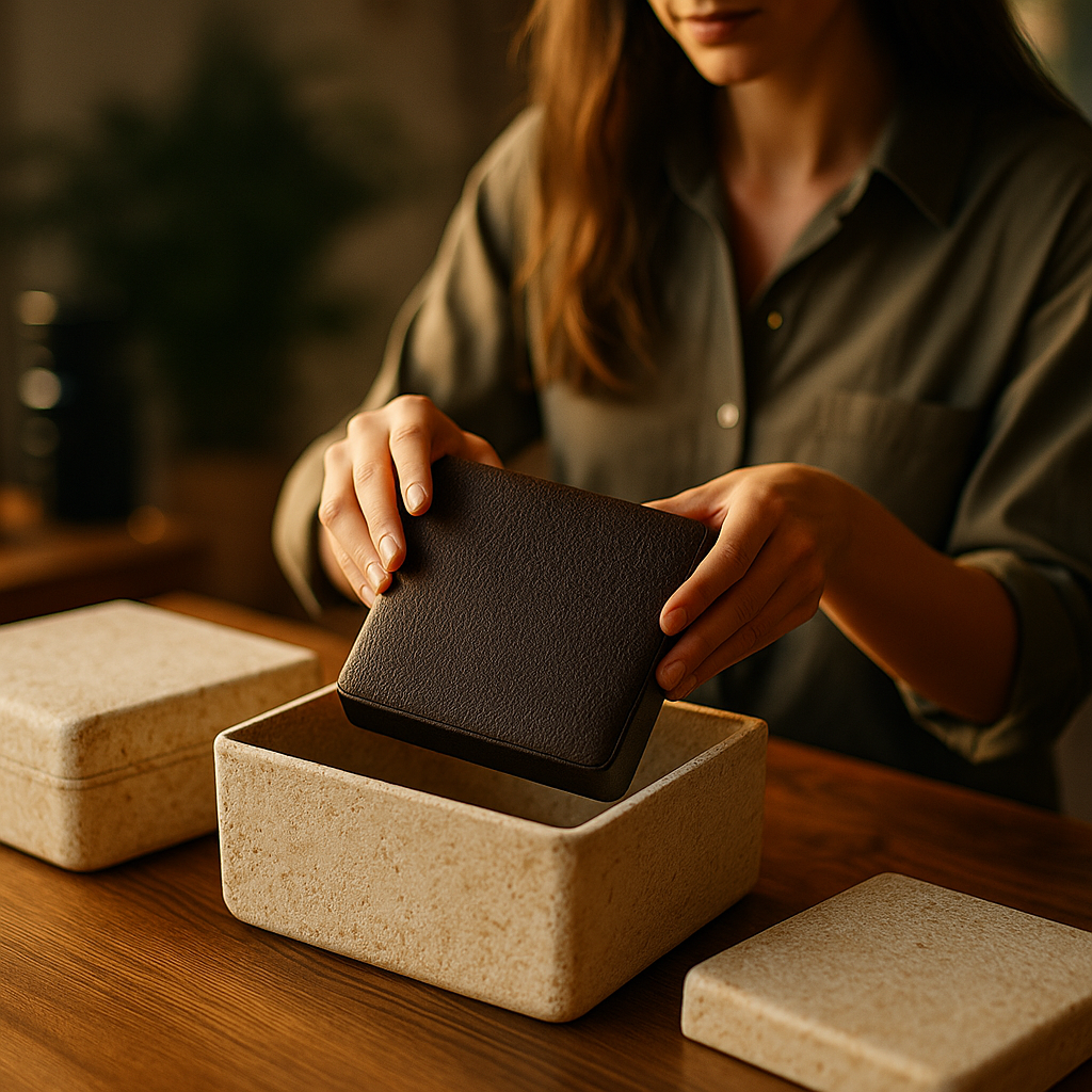 Second, the packaging changed the unboxing moment. Luxury packaging is not just about shelf presence. It is part of the product ritual. Mycelium has an organic, tactile quality that feels intentional. Used well, it can communicate craftsmanship, rarity, and design confidence. For brands trying to signal modern luxury, that texture can be an advantage rather than a limitation.