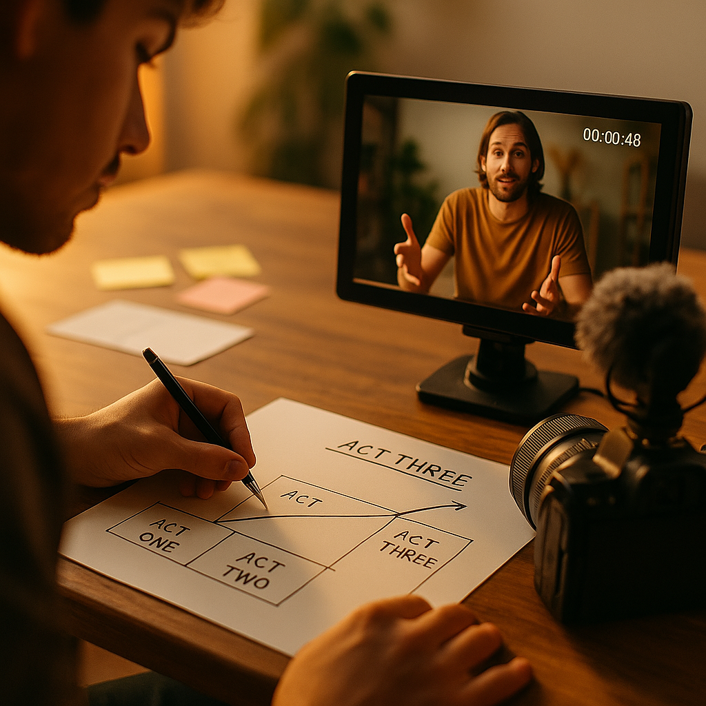 Screenwriters have used three-act structure for a century. The mechanics translate surprisingly well to short-form vertical video — but the timing compresses violently. Here’s how it breaks down for a 60-second piece: