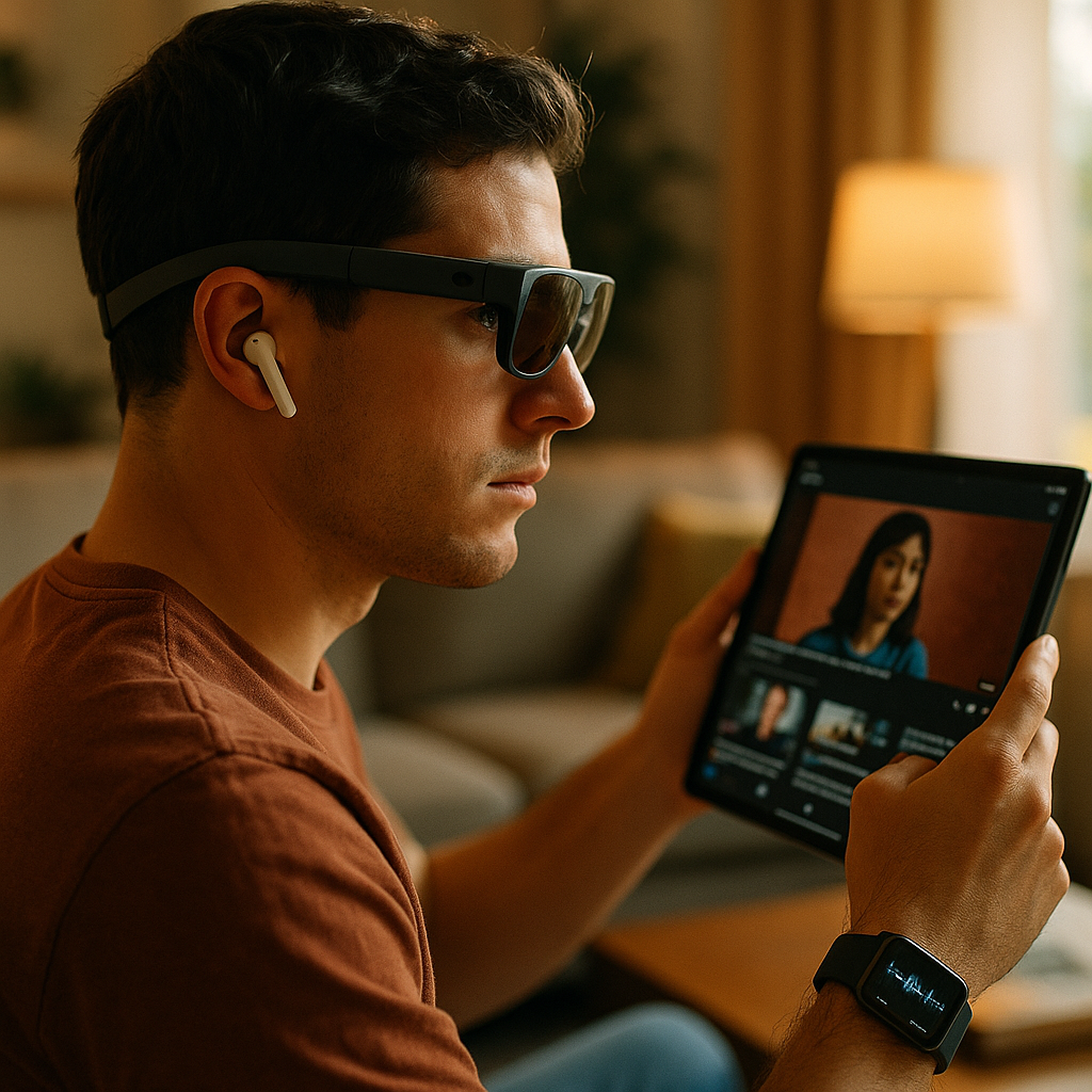 Entertainment becomes more context-aware. Earbuds can adapt audio to the environment (noise, motion) and provide interactive storytelling or companion commentary. Glasses can offer second-screen overlays—cast info, trivia, translations—without forcing a phone unlock. As a result, entertainment becomes “layered”: the core experience plus optional enhancements on demand.